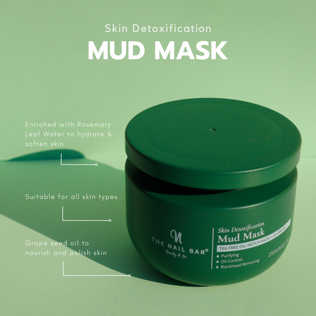 Introducing your skin's new best friend: THE NAIL BAR Skin Detoxification Mud Mask. Formulated for those who seek a flawless complexion, our mask is a harmonious blend of nature and science, designed to draw out impurities and leave your skin feeling fresh and rejuvenated.